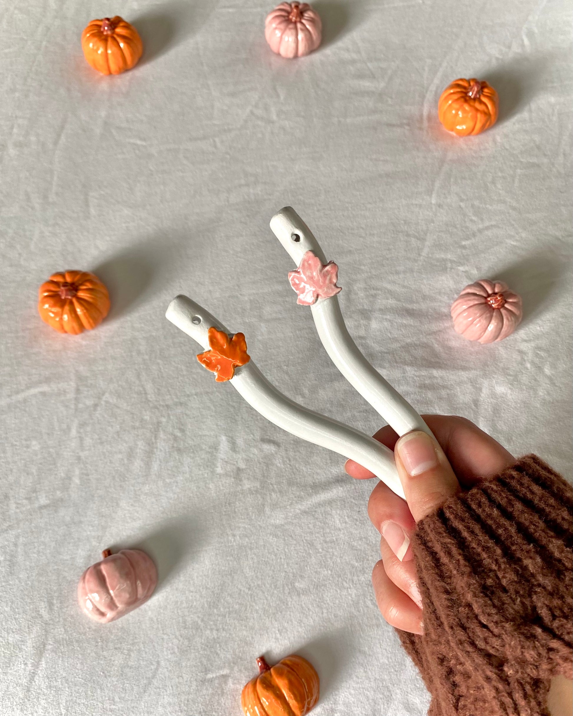 ♡ Touillette feuille d'automne rose ou orange. De quoi mélanger vos meilleurs chocolats chauds / cafés / thés...